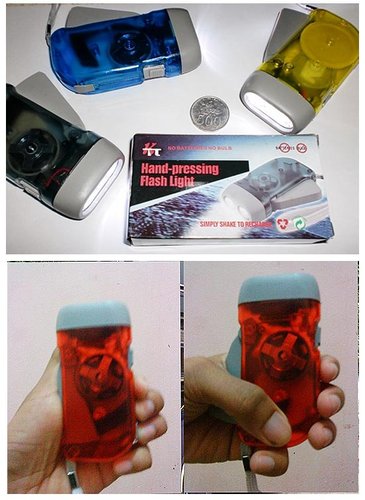 Senter pompa menggunakan dinamo tanpa menggunakan Baterai, dengan pompa yang ringan. nyala lampu cukup terang dengan 3 lampu LED yang besar.